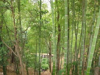 竹林は疎林で見通しがよく、斜面上部から湧水地を見下ろすことができます。